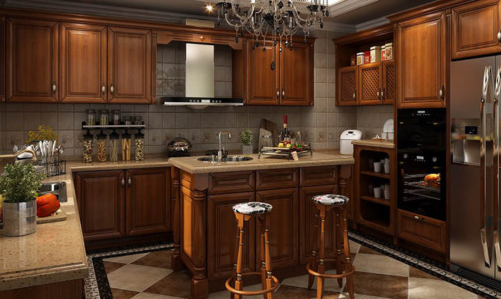 2、實(shí)木復(fù)合櫥柜以實(shí)木拼接料為基材,表面貼實(shí)木皮,同樣能達(dá)到實(shí)木的視覺效果;