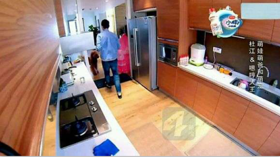 賈乃亮和杜江家一樣選擇木質(zhì)材料的實(shí)木櫥柜,更有質(zhì)感,沒有過多的造型,但清爽整潔。