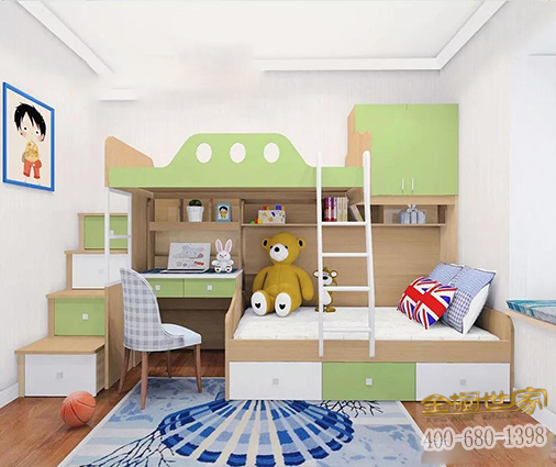 因劉先生有兩個小孩,所以用的是上下床設(shè)計,兩邊集合儲物柜和書桌功能,大大增加了空間是使用率。旁邊的樓梯柜不僅滿足小朋友爬上爬下的好動個性,又可以儲物收納,可謂是非常的棒丫。
